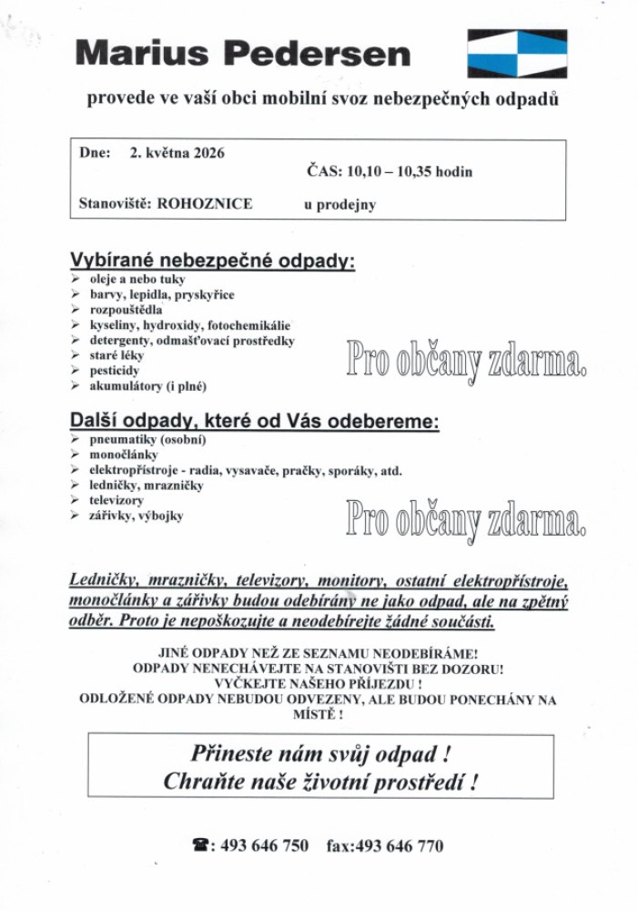 Svoz odpadu v sobotu 2.5.2026